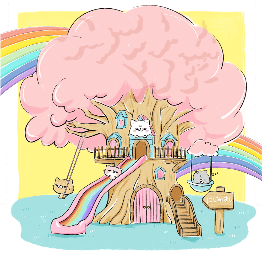 空の上にあるファンベビランドのツリーハウスで暮らすおチビな男の子ねこ。