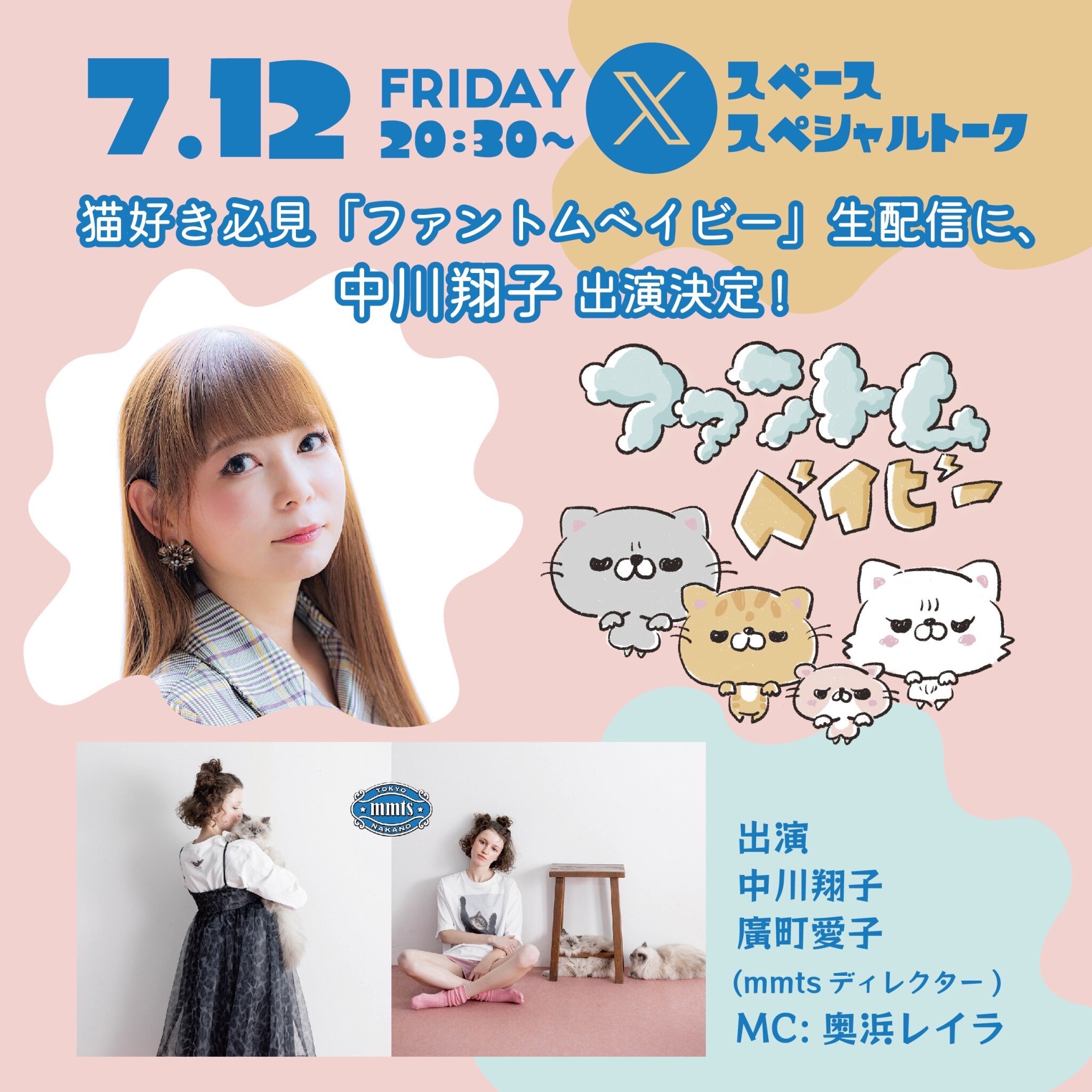7月12日(金) 20:30~「ファントムベイビー」初となるXスペースの生配信が行われます。記念すべき第一回となるこの配信に、中川翔子さんの出演が決定!